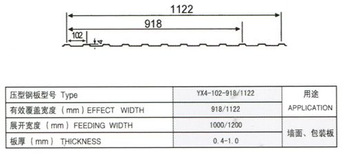YX4-102-918型(1122型)压型板 2021-8-19 本文被阅读 3961 次